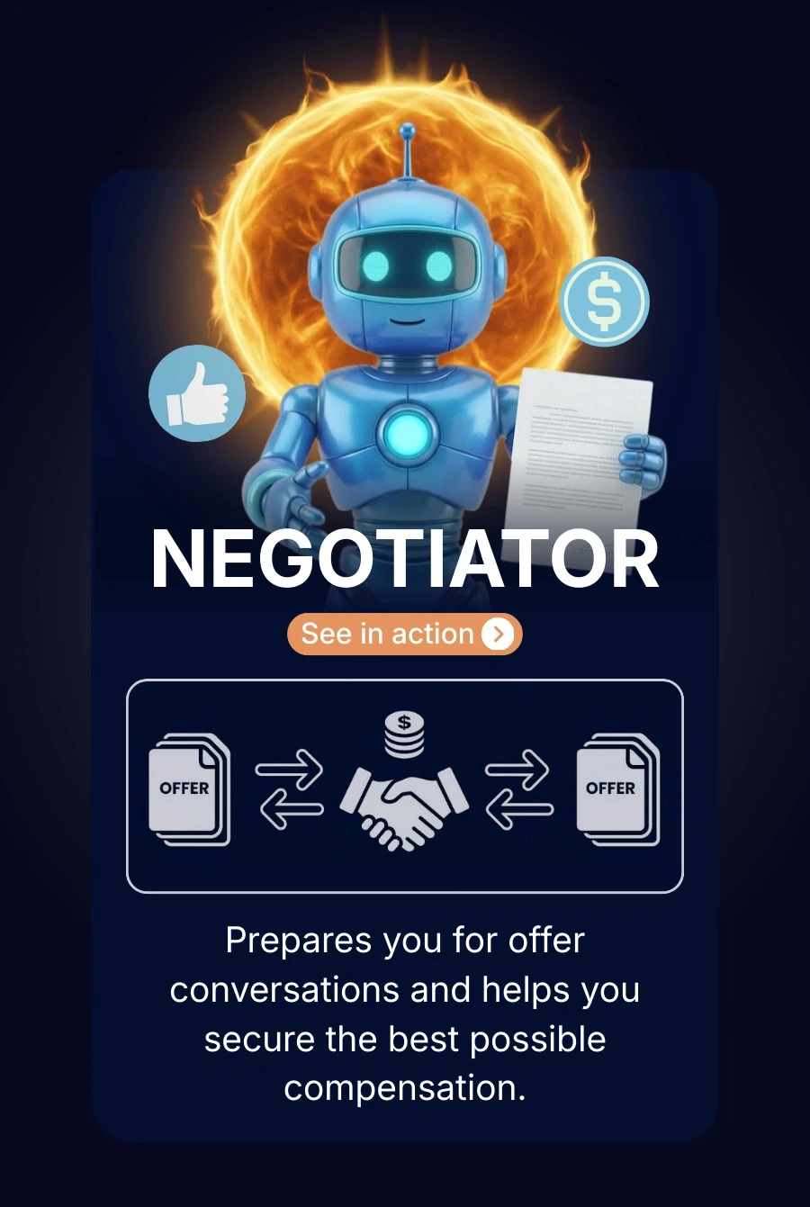 Your AI assistants to find your niche, craft WIN Projects, ace LinkedIn replies, interviews, and negotiate salary.