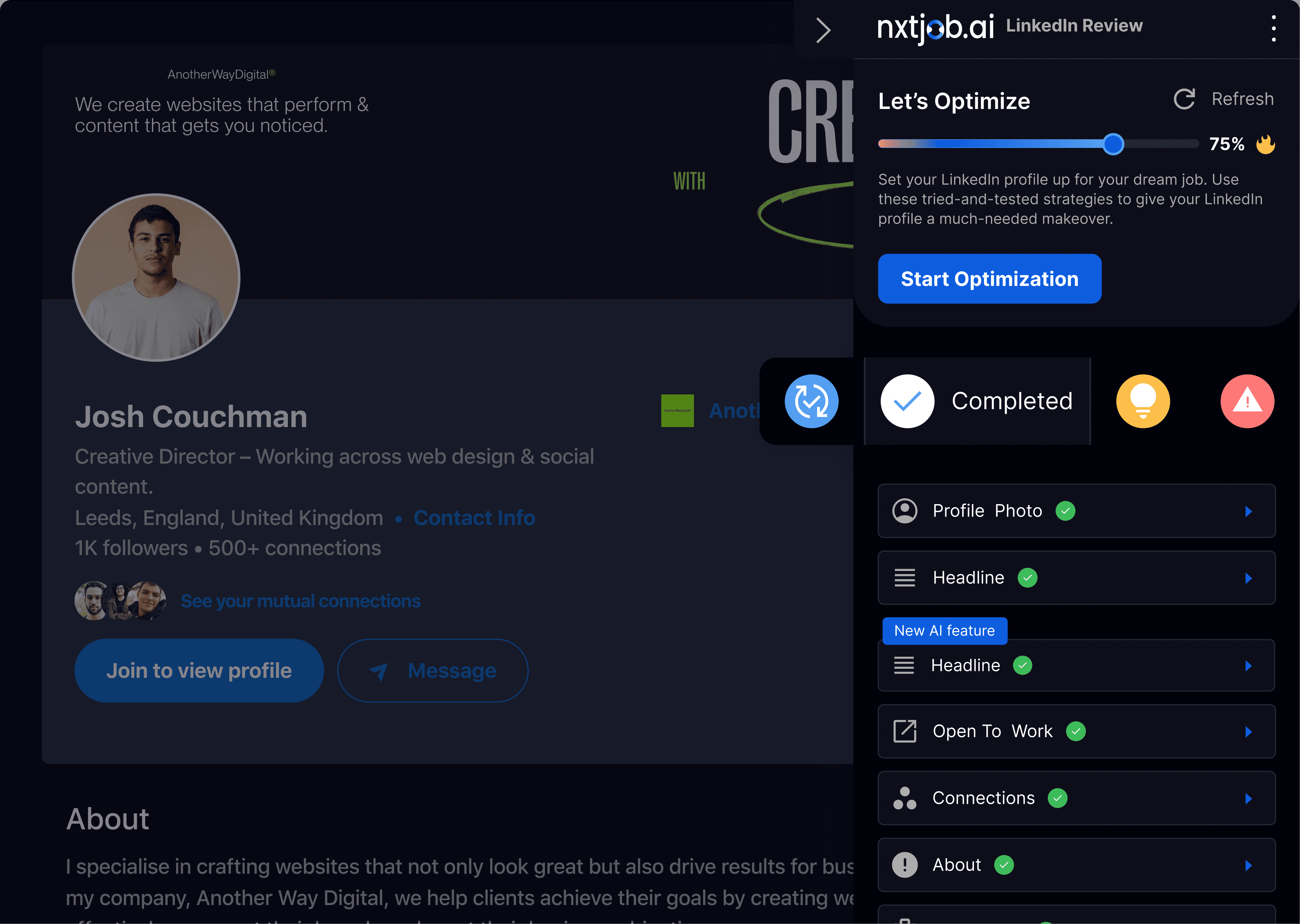 NxtJob's in-depth AI analysis pinpoints your profile's strengths and weaknesses.
